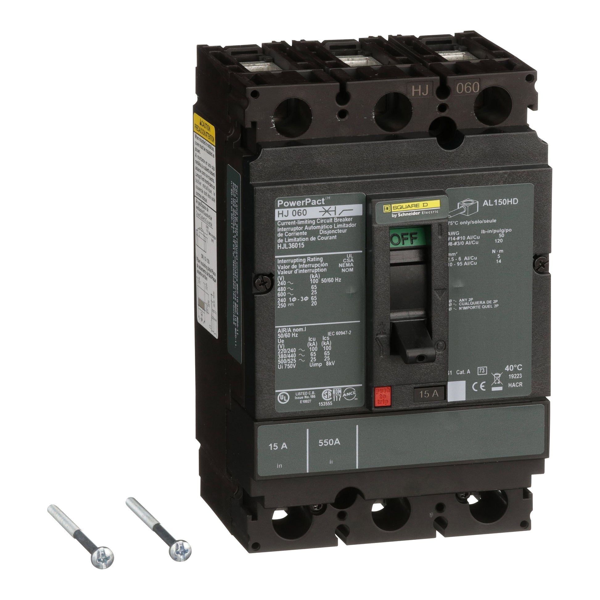Interruptor automático PowerPact H 65KA 3P 600V 015A Schneider HJL36015