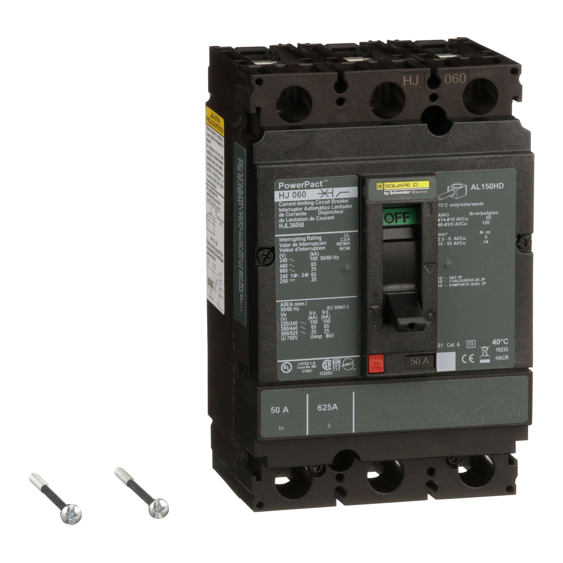 Interruptor automático PowerPact H-Frame 65KA 3P 600V 50A (65KA a 480V)MOLDED CASE CIRCUIT BREAKER 600V 50A Schneider HJL36050