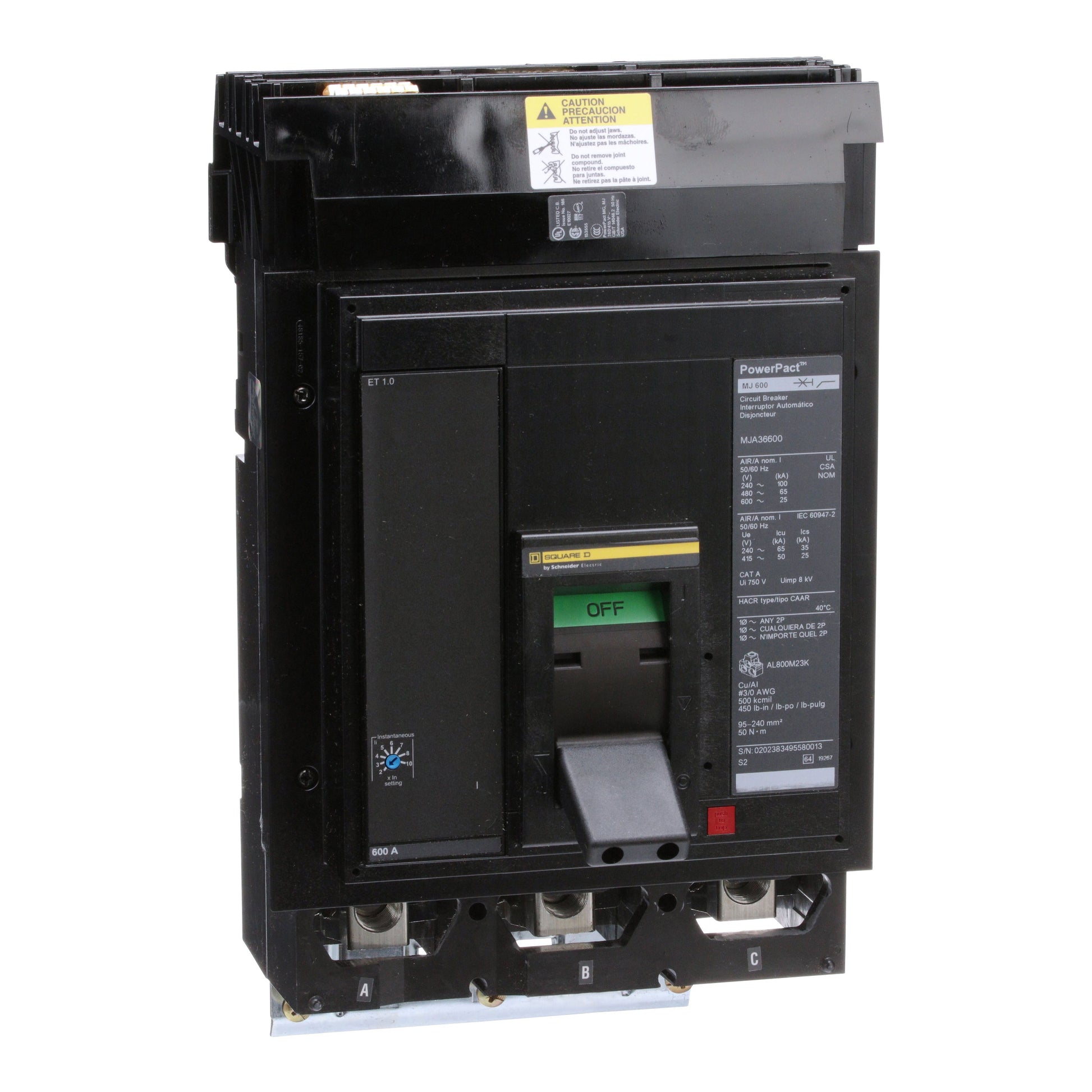 interruptor electrónico PowerPact-M 600A 3P 25kA 600V,I-Line Interruptor automático I-Line PowerPact marco-M de Square D. Funciones de protección (electrónico ET1.0) y switcheo en tableros de control nci Schneider MJA36600